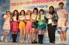| 本日6月6日、東京・渋谷PARCO公園通り広場にて「TRF イージー・ドゥ・ダンササイズでダンサーボディ」結果発表イベントが行われ、森三中、まちゃまちゃ、南海キャンディーズ・しずちゃん、ボルサリーノ関、出雲阿国、ツジカオルコが出演した。 「森三中presentsご褒美ダイエット企画」と題したこのイベントは、TRFのヒット曲でエクササイズができるDVD「TRF イージー・ドゥ・ダンササイズ」とのコラボレーション企画。関、出雲阿国、ツジの3名が、今年2013年3月に行われた挑戦発表会のイベント以来、このDVDを用いてダイエットに挑戦してきた。 身体の部位のうち二の腕など4カ所のサイズを計測し、もっともサイズダウンして“ダンサーボディ”を手に入れた人が優勝、というルール。優勝したのは合計マイナス41cmという成果を見せたツジだった。 ダイエット前に撮影された等身大の写真パネルを尻目に「くびれができた!」と現在の自身のスタイルを誇るツジ。優勝のご褒美としてツジは先月5月に開催されたTRFのライブにダンサーとして出演しており、今回のイベントではそのライブのVTRと、TRFのSAMからの祝福メッセージが上映された。またご褒美には来月7月発売の女性誌「FRaU(フラウ)」8月号にグラビア写真が掲載されるというものも。壇上では一足早くツジのセクシーな写真が公開された。 ちなみに出雲阿国も合計マイナス36cmと引き締まった様子で「体調がよくなって気持ちも明るい!」と笑顔。関もマイナス30.6cmと健闘してアスリートのようなボディを見せつけ、これにしずちゃんが「無駄な肉がない。フライ級くらいやったらイケる!」とボクシングに寄せて語ったほか、まちゃまちゃも「42歳(=関)が痩せると希望が持てる」と讃えた。 森三中・村上は「ただ痩せればいいというわけではなく、綺麗に健康的にシェイプアップされてるのがすごい」とコメント。大島は「24時間テレビ」(日本テレビ系)でのマラソン挑戦を控えており、今回のダイエットの成果に「こんなことなら一緒にやりゃよかった!」と悔やんだ。黒沢も「みなさん前向きになってる。私は30代で人生の選択を迫られてます。迷ってる最中です」と自分の人生に引きつけて独自の語りを展開した。 | ||